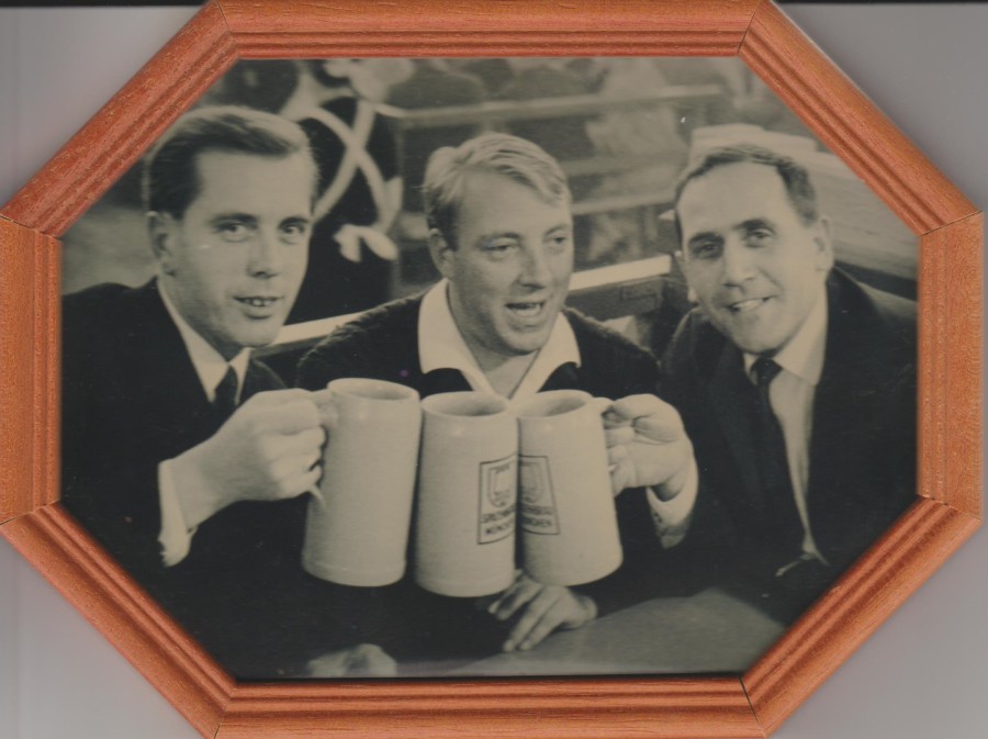 (11/2025) Es war ein Moment, der sich tief in mein Gedächtnis eingegraben hat. Der Geruch von Natronlauge und Entwicklerflüssigkeit, das gedämmte rote Licht der Dunkelkammer, und mein Vater Klaus, der hochkonzentriert ein Foto in einem Wasserbecken hin- und herbewegte. Davor hatte er das Blatt genommen, auf einen speziellen Tisch gelegt, es kurz belichtet und danach in die dafür vorbereiteten Chemikalienbäder getaucht. Es dauerte bis zu zwei (Foto privat: v.l. Zeitler, Heirler H. Walz)